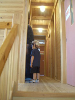 (左:階段は敢えて塗装・無塗装を両方試してみたとの事。 右:2F。息子は探検気分かつハイチュウを貰い終始ご機嫌)