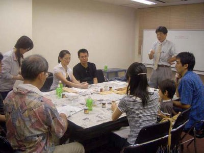 一通り説明を聞いた後、今度は実際の椅子を使って思い思いの色で色を塗る。素材として杉と檜では塗料の塗り易さが違った(檜は難しい)。塗る、というよりは刷り込む感じなのが良く判った。出来上がった椅子は持って帰る事ができ、息子も含めて結構楽しめた。 ちなみに、私達は実際の家でも仕えそうな濃いブラウンを試してみたのだが、父がいきなり豪快に黄緑を塗り始めたのにはびっくりした。その父も勉強会は結構面白かったらしい。最後はご機嫌に車に乗っていた。 |
