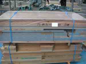 到着した土台と板倉壁になるパネル。板倉壁は板倉の板を徳島でパネル化して持ってくる。パネルにする作業は手作業で1枚1枚色目を合わせながら行っていた。 | |
