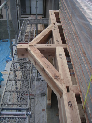 バルコニーの処理。1階の梁から支える構造で、これならばかなり強そう。 | |