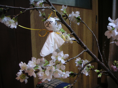 (嫁さんと息子が作ったてるてる坊主。なんとか天気頼みます・・・)