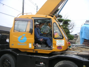 この日は3日間応援にきてくれた鳶大工のお二人は不参加。ファンキーなクレーン屋もこの日は別の人に替わっていた。