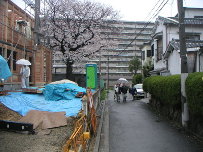朝は興奮して4時半に目が覚めた。パソコンを開いて天気予報をチェック。夜のうちに降った雨は予想通り明け方にはあがったようだ。メールをチェックしたらオカ所長からメールが届いていた。玄関廻りを一部修正したのでその立面図がついていた。発信時刻を見てみたら4時12分。オカ所長気合いが入っているなあ・・・。8時半に自宅を出発。嫁さんと息子、そして弟の嫁さんの4名で現場に向かう。