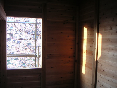 あまり昼休みのお邪魔をしてはいけないので、M棟梁の許可を貰って2階に上がらせて貰った。床もしっかり張って仕上げはこれからだけれど部屋の雰囲気は良く判る。図面で何十回観ていたが現場を観て初めて気がつく事も多い。部屋の広さは最初狭いかな?と思ったが2階で一息ついているうちに「まあまあ広いやん」と感じた。家の大きさの感覚は大きくなったり小さくなったり面白い。
