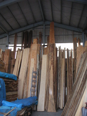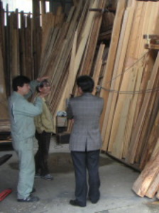 一通り工程を観終わった頃、丹陽社オカ所長・Hさん・Uさん到着。ストックしている高野槇の材を観て廻った。 | |