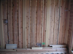 高野槇の角材。今まで観た材の中でも一番白っぽい感じだ。檜よりもまだ一段白い。 | |