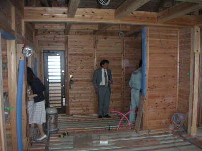 2時半頃、親戚のY叔父夫婦が観に来てくれた。前の家を解体して以来、新しい家の現場を観るのは初めて。 |