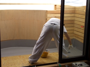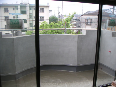 4日からは現場も休みになる。「天気良さそうで養生期間も取れるので、バルコニーの防水工事を行った」との報告をメールでオカ所長から頂いた。連休明けに現場に到着すると、3日経っていたにも係らずアスファルト防水の強烈な臭いが残っていた。なる程養生期間がしっかり取れるこのタイミングはベストだったなあ、と思った。 |