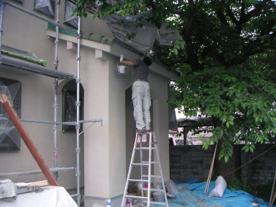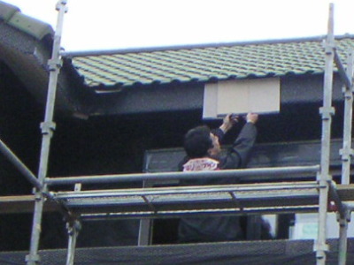 外では、塗装屋が瓦の裏の色を整えてくれていた。 | |