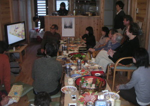 年始の2日に正月の集まりで親戚一同21名が大集合。集いの間にも入りきらず和室も使っての新年の宴。集いの間とは半収納できる障子での仕切りなので、障子を開ければ集いの間との続き間になる。年に1〜2回の事ではあるが、ここら辺は設計の狙い通り。実は年末ギリギリに弟夫婦に待望の第一子が誕生。今回退院直後ではあったが、母子ともに登場。出産を知らされていない親戚もいたのでおおいに場が沸いた。今まで常に集まりの人気を独占していた息子もさすがに世代交代か・・・。当の息子はこちらの親戚での初従兄弟誕生に大喜びで、自分の三輪車やミニカーを貸してあげるのだと張り切っていたが、当然生まれてまもない赤ちゃんにはまだ早すぎ・・・。また、昨年11月に結婚した妹夫婦も東京から帰ってきたので、これまた親戚への初披露となる。いつもにも増しておめでたい雰囲気の正月となった。