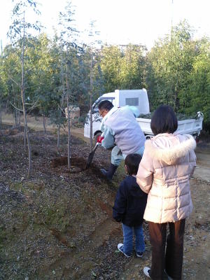 年末に植木の剪定をして貰った(有)澤野園に、家族3人で木を観に行く。我が家は北東には桜が、南には祖父が育てた松やつつじ、桜等が植わっているのだが、玄関からのスロープの辺りが何も緑が無くてちょっと寂しい。で、ここには当初から何か植えたいと思案していた。