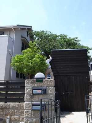 木塗水を塗っているガレージ、板塀。2〜3年で色の脱色は進んでいたが、丸5年経ちさすがにほったらかしにはできなくなった。シルバー人材センターに依頼し、3名×2日て塗装+補修を依頼した。箇所は昨年自分達で頑張った北側を除く外構木部。ガレージ、板塀、縁側。