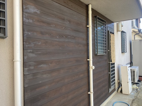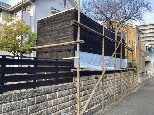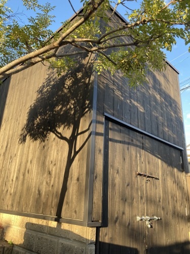 状況をオカ所長に電話報告。「それだけはやめましょう!」との第一声に、同じ志向は変わっていなかった事に安心。「焼杉を上から貼るのは如何でしょうか?通常の杉板よりも耐久性があります。それを縦に貼れば雨の滞留も防止できます。」との御提案を頂いた。最近の新築では採用事例が多いらしい。我が家にはピッタリ。サイディングとの費用比較をするまでもなく、それでお願いする事にした。