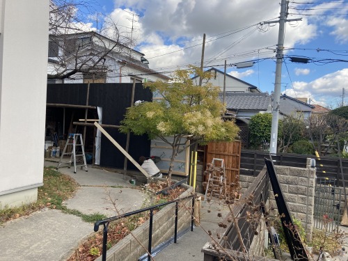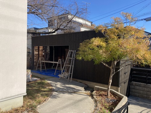 午後、丹陽社側の板金屋が到着。予定通り自転車小屋と板塀の板金を貼っていってくれた。やはり発注が異なる重複工事は思い掛けない事が起こるし難しい。何はともあれ、大工仕事は年内に片付いて良かった。
