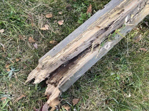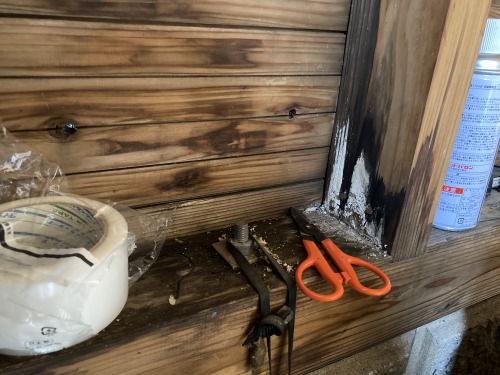 腐っている箇所を剥がす。思っていた以上に木材の傷みが進行していた。