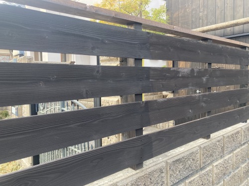 ちなみに家を建てた当初は水性自然素材成分の木塗水(外壁用)を使っていたが、対候性に劣る為再塗装3回目からキシラデコールに変更。外構は室内とは違うので成分にそこまで拘る必要性はないし、何より対候性が全然違うので以降はキシラデコールを重ね塗りしている。