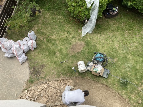 道路工事の斫り工事と同じブレーカーを使っての作業。事前にお隣さんに連絡をしておいて良かった。在宅勤務のWeb打合せで、上司もビックリ(?!)