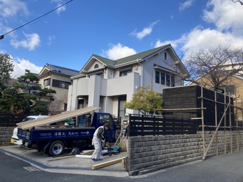 年末迫った12月、外構リフォーム作業に掛かる。夏に板がめくれる事態になってから間が空いたのには、再塗装の段取りに時間が掛かった為。丹陽社にリフォームして貰うのと前後して、別途塗装作業はこれまで同様シルバーでお願いするつもりでいたのだが、これまで10年間お世話になったNOさんがお亡くなりになっていた事が判明。話も早く人手を集めるのにも長けていて、任せて安心のNOさんがいなくなってしまったのは痛い。シルバーとは言っても、外構塗装といった専門性の高い作業が出来る人材というのは、実はなかなかレアだという事が判った。
