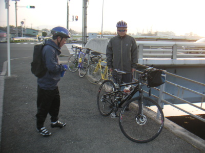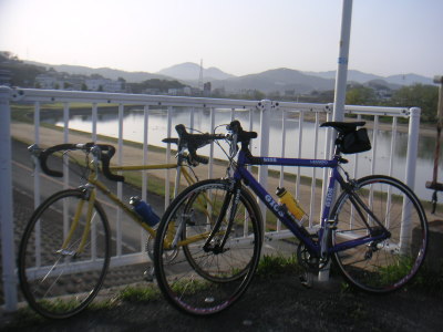 普段は単独か、Tと二人で走る事が多いのだが、この日は意外な人が参加。RYUBE大阪のメンバー・スギさんである。なんでも10数年振りに埃をかぶっていたロードバイクを整備したので参加したい、との事。 大和川のあびこ大橋に現れたスギ氏は、随分と本格的な格好。よくよく事情を聞いてみてびっくり。スギ氏、高校時代はなんと自転車部だったそうな。毎日のように自転車に乗り、競輪のオーバルコースも走った事があるのだとか。 |