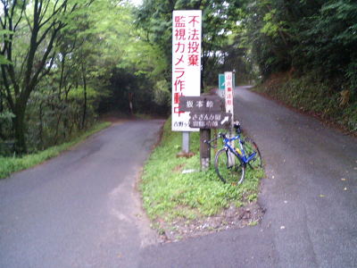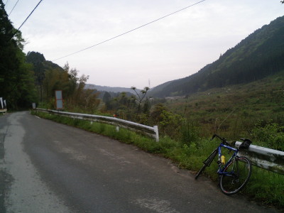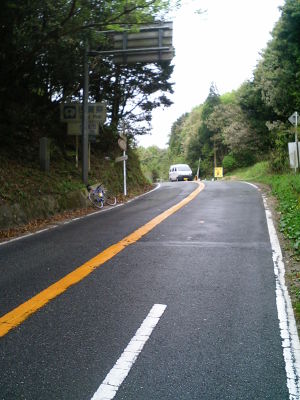 国道385号に出て、そこからはゆるやかな登りが続く。昨日の経験上スピードさえ出さなければ程々の登りはそれ程怖くはない。南畑ダム(標高280m)までは案外すんなりきた。 しかし、南畑ダムのダム湖を越えてから坂本峠までの4km、特に旧道に入ってからは斜度もキツクなり、三瀬峠以上にキツかった。「なんで自分はこんなしんどい思いをしてこんな事しているんだろう・・・」 |