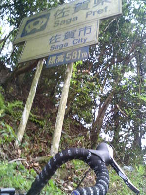 背振ダムを越えてからは、割と路面の整った道。アップダウンがあって前には進むが標高がなかなか上がらない感じ。それでもなんとか、無事板屋峠に到着。653mは今回の福岡チャリツーリングで最高地点。スピードはともかく、二つの峠を登りきったぞ。 |