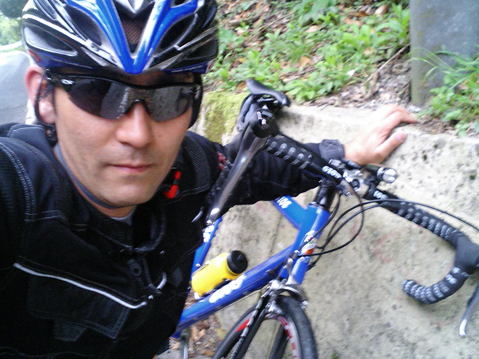 嬉しくて、思わず記念撮影。しんどいばかりだったのに、登り切ってみると、「なんだ、この気持ち良さは!?」。ヒルクライム初体験ですっかりヒルクライム・マゾになってしまったか!?