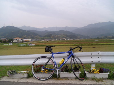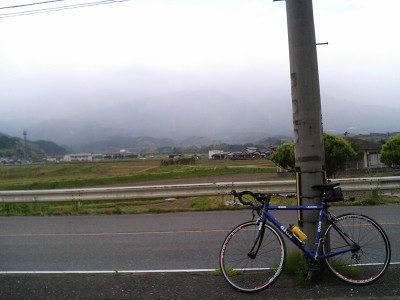 下ってきた背振山脈を遠く眺める。昨日・今日で自転車の新しい世界と可能性を覗けたように思う。結果的にGW中一度も風が吹く事は無くて、本来の目的であったウィンドサーフィンには一回も乗れなかったが、そのかわり自転車を存分に乗る事ができた。