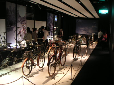 いろんな観戦ポイントを探しながら歩いていて、中央図書館に隣接している自転車博物館を発見。特別に無料開放していた。一度観てみたかったのでラッキー。TT観戦もちょっと飽きてきたところだったので暫し見学。 発明された当初の自転車から、アームストロングがツールで優勝したロードバイクまで展示してあって、館内は広くはないものの見応えあった。 |