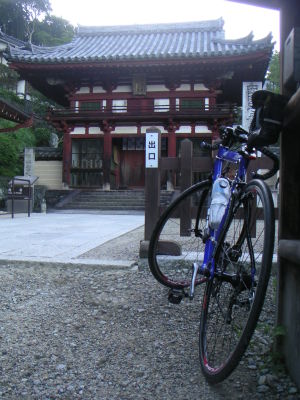 奈良側に降りる頃に日が昇ってきた。国道165号は車もほとんど走っておらず、快調。大和高田のややこしい箇所も前日の下見で全く迷う事無く竹之内街道に入る事ができた。時計に目をやると5時20分。ここで色気が出た。往路でも2時間切りが可能なのではないか? 当初予定は往路は無理せず復路に備えて体力温存。明日香村手前辺りでコンビニで休憩して、食料調達とドリンク補給をする予定だった。幸い順調に走ってきてほとんど疲れていないし、ドリンクも思ったより減っていない。「いってまえ!」四条交差点も越えた辺りで往路も無休憩で走り切る事に決めた。川沿いを走り、明日香村入り。甘樫丘をかすめて、飛鳥寺経由で最後の激坂を登り切り岡寺に無事到着。時計を見ると5時50分。あっさり目標としてきた2時間を切る事ができた。 |