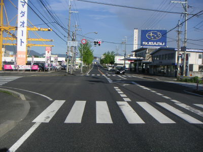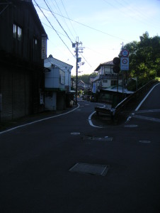 四条交差点からは国道166号を西進する(←の写真)。この道は前日の調査で朝はほとんど交通量が無い事が判っていた。路面状態も良い。のんびり走るならば少し北を平行する竹之内街道が良いのだが、TTで走るならばこの道がベストだ。大和高田市内を抜け、国道165号に接続。ここから穴虫までは若干の登りがダラダラ続く。ペースは20km/hを下回らないように注意しながら我慢の走行。穴虫峠を再び越えたのは7時20分頃だった。 |