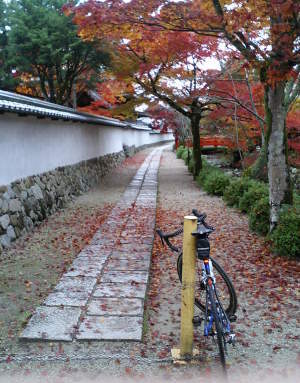 ケロリンから「天野街道という面白そうな街道がある」と聞き、一緒に走る事になった。6時半国道310号線沿いの福田交差点で待合せ。そこから河内長野まで何度か走った西高野街道を進む。坂を暫く登った後、西高野街道と天野街道との分岐がある。ここを直進。暫く走ると舗装路が途切れて、突然里山風情の道になった。