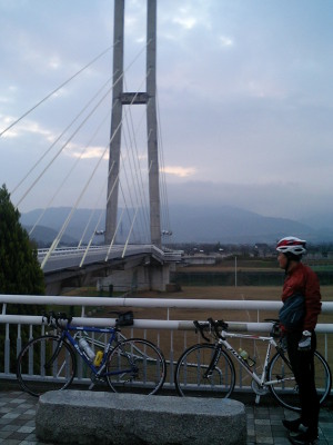奈良側は気持ちの良いダウンヒル、のはずだったが路面が濡れている為ブレーキングに神経を使いながら下る(勿体無い!)。下りきった交差点で県道30号に折れて、今度はアップダウンの続く直線路を北上。前回同様、車が詰まっているところを狙って加速、うまく風除けにする事で速度を維持する。2箇所程休憩をしながら、9時半無事柏原市役所到着。奥様からお土産を頂いていた為、Leggeroをハムオの車に一緒に乗せて貰い(エスティマは楽々ロード2台、タイヤも外さず載せる事ができる)、自宅まで送って貰った。さて、今回ハムオと走って3回目。9月に走った時はあまりの巡航速度の差にショックを受けた。今も変わらずハムオは速いが、以前に比べれば全くついていけない、という程では無くなった。苦しい場所は先頭を交代しながら走り、協力しながら走るのはなかなか楽しい。