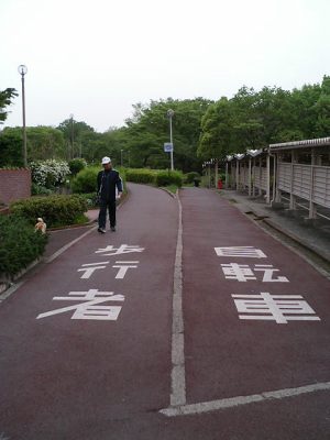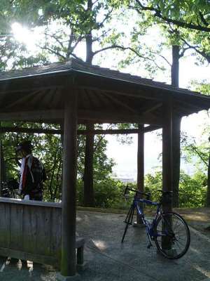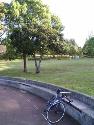 栂緑道の面白いところは、歩行者と自転車のレーンを分離している区間が結構ある事。緑道はお年寄りが犬を連れて散歩している事が多いので、これはなかなか良いアイデアだと思う。反面緑道と歩道を交錯する箇所では自転車止めがあって、これはかなりうっとうしい。バイクを入らせない措置ならばあそこまで細い自転車止めは必要なはず。 栂緑道を登り、御池公園を越え、終点のかたつむり橋には6時15分頃には到着。ケロとの打合せでは御池公園に6時45分だったが、30分も待っていられないので、迷わず先に行く事にする。一旦泉北周回道路に戻り、城山公園の手前から光明池緑道に入る。 城山公園から鴨谷公園に下っていく途中、怪しげなロードと1台すれ違った。「おい!」と声を掛けられて振り向くと何とケロだった。三原台到着時点で一応メールはしていたのだが、どうせ御池公園にはこちらが先につくので、「朝寝坊は置いて、俺は先に行くで」という意味だった。奴は自宅から光明池まで真っ直ぐ直行し、先回りしていたという訳だ。出し抜いたつもりが、逆に見透かされた気がしてなんだか癪だ(苦笑)。 |