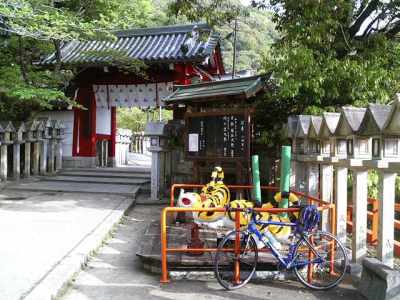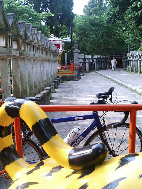 朝7時過ぎなので、人も少なく、読経の声やなぜか法螺貝の音が朝の静寂の中に響く。眼下には奈良盆地が一望でき、朝のこの時間しかお参りした事はないが、毎回清々しい気持ちになる。ちなみに信貴山は虎に縁があり、門の手前にははりぼても置いている。タイガース必勝祈願も併せてしてきた。 信貴山からはぶどう坂を経由して柏原まで下る。これまた気持ちが良い。今日は調子に乗りすぎてヘアピンカーブ手前のブレーキングで一瞬後輪がロックした。バイクと違って自転車のタイヤは細いので、タイヤのグリップ力に過度の期待はできないと、改めて実感。 |