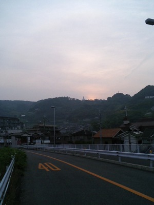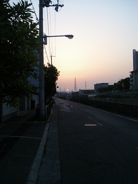 朝5時3分の日の出。 これこれ!これなんだよなあ・・・!!朝駆けの醍醐味の半分は、この日の出を観る事にある。まだ薄暗い中走り始めると、空が次第に虹色に染まる。そして暫くするとお天道様が顔を出す。この時間は歩いている人がほとんどいない。道は貸切状態になり、世界はまだほとんど止まった状態。そんな中でペダルを漕いで風を切るのは最高だ。もっとも、この最高の時間は20分と続かないが。明るくなる空に併せて湧いてくる人や車で、あっという間に普段の日常が動き出す。