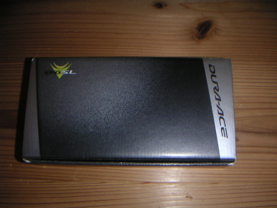 値段は105の3倍。DuraAce導入はリアスプロケットに次いでだが、箱が立派なので思わず写真を撮る。この箱代だけで結構しているのでは? | |
