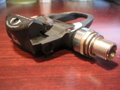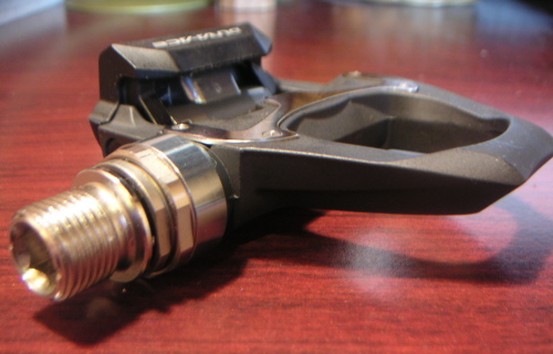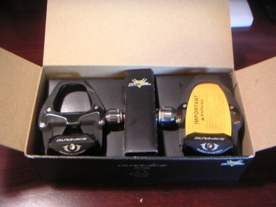 DuraAceのペダルは、去年モデルチェンジしてボディがアルミからカーボンに替わった。正直なところ、こんな値段だとそうそう買い替えれるものでも無い。カーボンはウィンドサーフィンをやっていた頃の衝撃に弱いカーボンマストの印象がどうしてもあって、当初はひとつ前のアルミボディが欲しかった。購入に踏み切ったのは、S店に実際に使われている同じペダルを観る事ができたから。素材はカーボンなのだが、実際に使われているのを観ると金属のような光沢がありかなり丈夫そうだった。「あまりヤワだったら、ちゃんとシマノに文句を言いますから」という店長の言葉も信じて、購入を決断した。 ちなみに、DuraAceのペダルは軸にベアリングがあるので回転が良い、らしい。 |