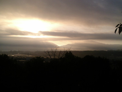 久しぶりにケロの朝駆けに付き合う。西高野街道を北上し福田に6時半待ち合わせ。そこからよく判らない道をグネグネと走り、富田林手前の新興住宅地に到着。その端っこの公園から富田林〜河内長野が一望できた(左の写真)。晴天の朝も良いが、こんな曇り空でも合間から日が差してなかなか綺麗なものだ。 | |