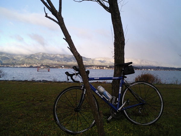 琵琶湖大橋を渡り、今度は東岸沿いを南下する。湖南中部浄化センターの辺りから向かい風になる。後ろを走る私はともかく、先頭を走るケロはさすがにキツかったようだ。昔からケロと走る時は、ケロが先頭をひたすらひいてくれるので楽チンなのだが、こういう中長距離を走る時は先頭交代を考慮する必要がありそうだ。