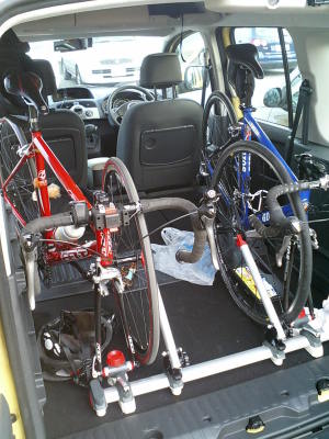 総走行距離44km.。走行時間は1時間43分。平均25.5km/hはなかなか。穴虫峠往復コースとほぼ同じ距離だったが、今回のような新しいコースを走ってみるのも楽しいものだ。それにしてもカングーの後部荷台(上の写真)。2台縦に置ける。これに朝はNewestを積んできたのだから驚くべき積載性能である。羨ましい限りである。今後も変則朝駆けの足に供出して頂こう。