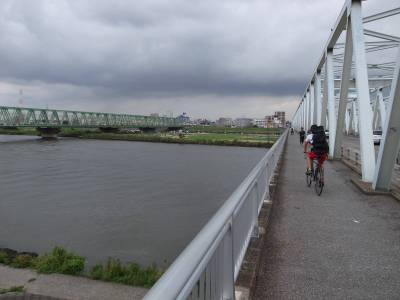 強烈な向かい風の中千葉街道(国道14号)を西に進み江戸川を越える。 |