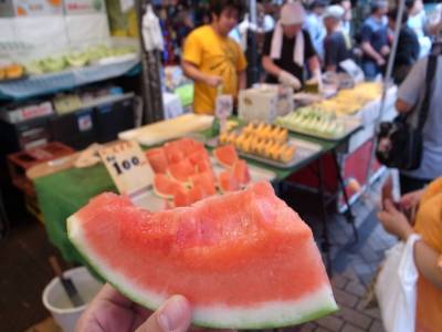 丁度喉が渇いていたところにフルーツ屋台があり思わずスイカを買って食べた。美味い! |