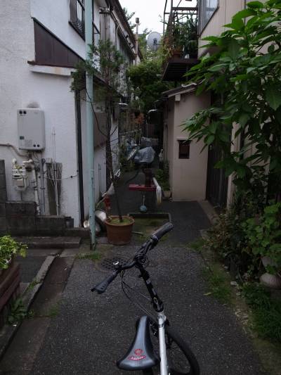 裏通りの細い道、細い道を選んで走っていたら、最後ここまで細くなった。昔の長屋の雰囲気が残っている。 |