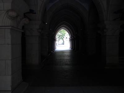 校舎の中を貫く回廊。さすがは東京大学。石造りの重厚感が凄い。 |