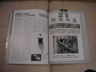 アメリカ・ボンネビルで世界最高速チャレンジをした宮崎敬一郎氏の記事や、ZZ−R1100の開発に係ったカワサキの技術者インタビュー等、ZZ−R1100にまつわるエピソード(歴史)は、第5章・6章で掲載されている。 ZZ−R1100(D型)のプレスリリースの原文も第6章に掲載されている。 この記事を私のつたない英語力で翻訳したものは、ZZ−R資料室に掲載させて貰っている。 |