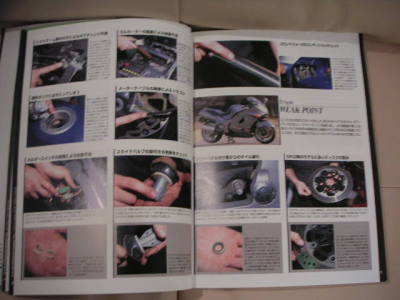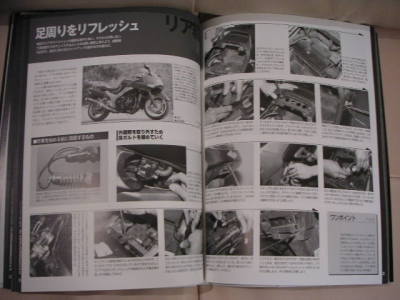 主要部のメンテナンスをどのように行うのか、実際の作業をいくつかテーマとして取り上げて、作業状況を写真つきで紹介している。エンジンオイルやプラグの交換といった基本的な事から、リアサスのオーリンズへの換装等、私自身興味を持っている作業が紹介されていて面白い。自分ではできないが、作業をショップに依頼するのでもどんな作業をしているのか判っているのは有意義だと思う。いつか将来必要になるであろうエンジンオーバーホールに関しても紹介されているが、ZZ-R1100のエンジンの仕組みも判って面白い。尚、巻末にはパーツリストの抜粋もある。 |