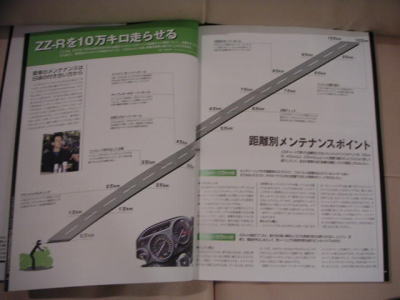 5年前の2003年刊行なので、当然今読めば記載内容に若干古さは感じる。特にアフター製品情報は既に生産中止になっているものも多くある。でもまあ、それは最新の情報をインターネットで確認すれば良いだけの話で、古い情報でも検索を掛けるのには大きなヒントになる。そして、メンテナンス情報は基本的に古くなる事はないので、非常にありがたい。自分でできる・できないは別にして、どんなメンテナンスをしていけば良いのかよく判る。特に「ZZ-R1100を10万km走らせる」の記事は白眉で、走行距離に応じて現れやすい症状の紹介、どんなメンテナンスをしていけばコンディションを維持できるのか、それを具体的にチャートにして書かれているので非常に参考になる。私のようにZZ-R1100をどんな事があっても乗り続けようと決めている人間にとっては、この本はバイブルだ。
