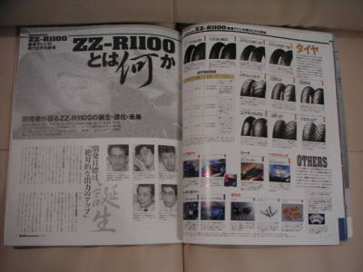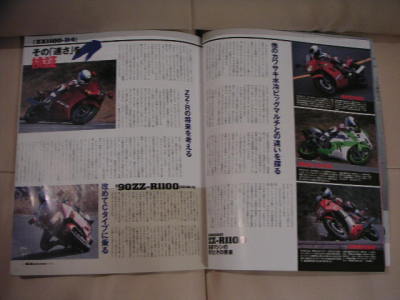 CBR1100XXが登場する前、まだZZ-R1100が最速バイクだった頃の特集記事。私がZX-11を購入したのが96年の10月だった。この雑誌のZZ-R1100特集は隅々まで読み尽くした記憶がある。特に実用性チェックのページなどは、当時乗っていたZZ-R400と比較しながらあれこれ考えた。ZZR1400が登場したお陰で、今でも時々雑誌でZZ-R特集が組まれたりするが、ポジションや燃費といった実用性チェックの記事は現行販売モデルだからこそ、というところがあってなかなかお目にかかれない。その意味でZZ-R1100がバリバリ最速バイクとして現役だった頃のこういった記事は今でも結構参考になるし面白いので、時々思い出したように読み返している。