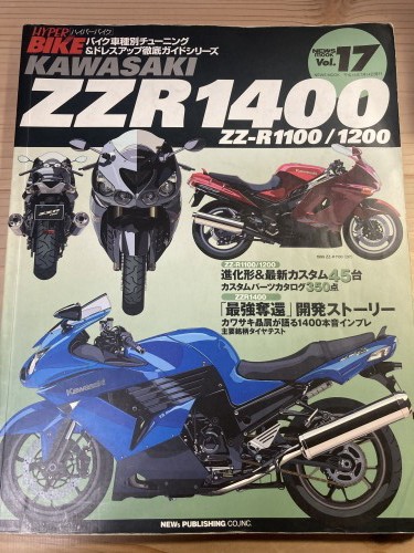 BIKE NEWS MOOK Vol.17。今読み返しても白眉な内容で新発売のZZR1400記事よりもZZ-R1100/1200のカスタム関連記事の方がスペースが多かった。当時まだ私は営業部所属。担当地区が四国だったので、毎週カバンにこれを入れて往復の電車/高速バスの中で、記事を隅から隅まで何度も読み返した。