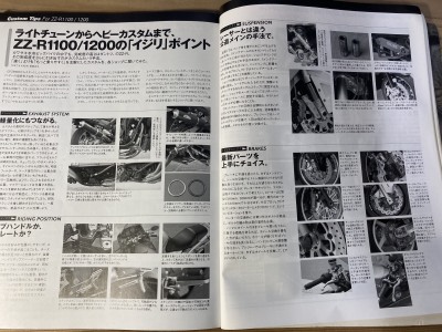 この雑誌が発売される数年前から、ZZ-R1100はカスタムがかなり流行っていた時期で、カスタムショップのデモ車だけでなくオーナーのカスタム車両も数多く写真+コメント付で紹介されていた。これは格好良いと思う車両もあれば、原型を留めていないひどいカスタムがされているZZ-Rもあったりして、良くも悪くも自分のZX-11のカスタムを考える上で大いに参考になった。